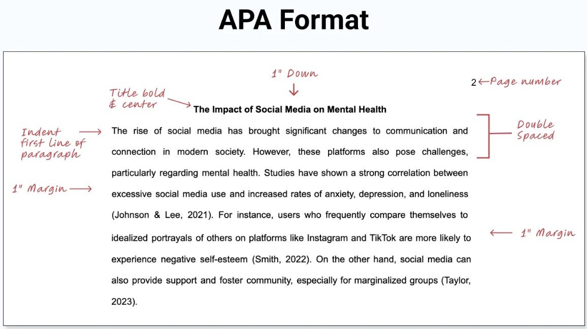 Font type and size (usually Times New Roman 12pt or Arial 11pt)